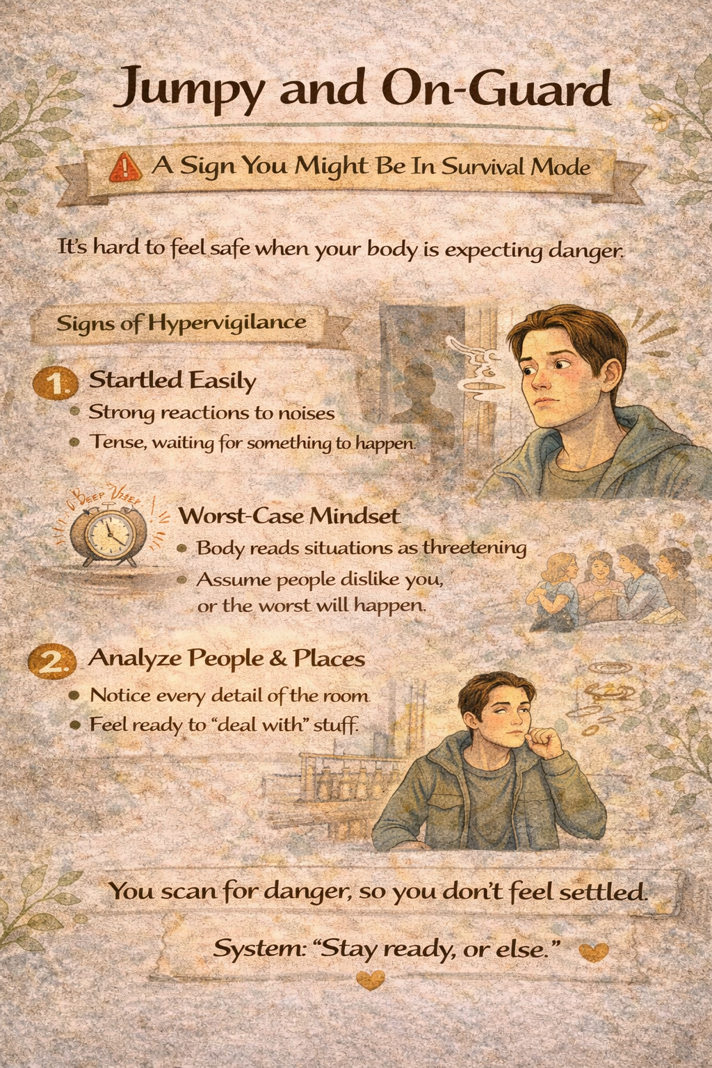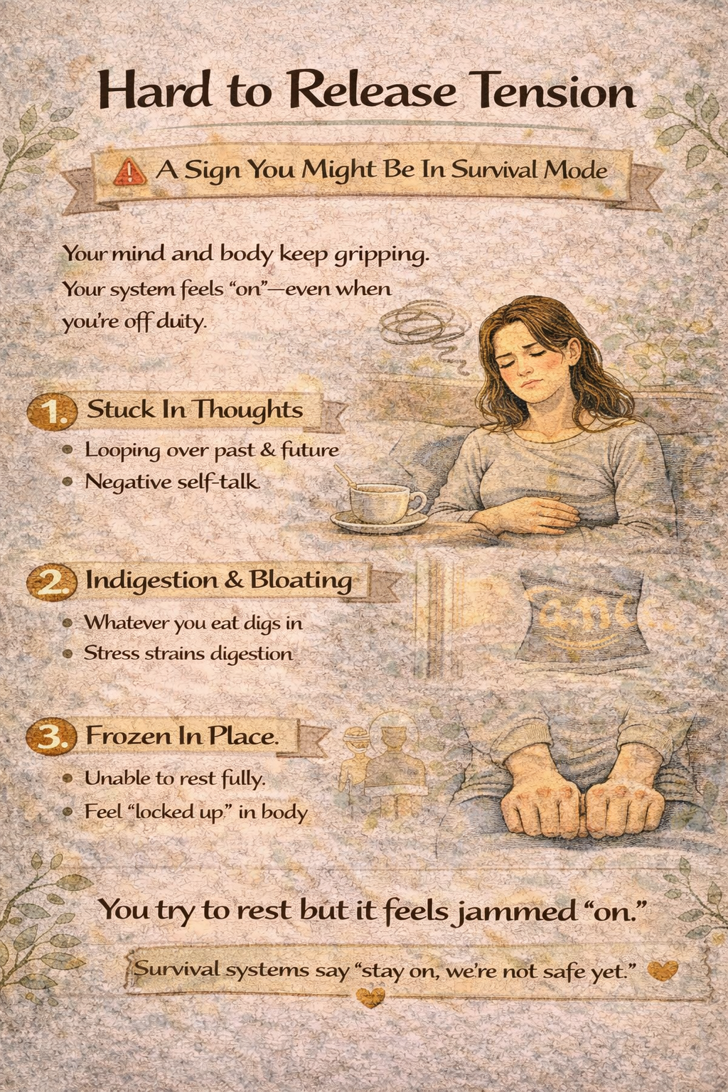 The body often shows survival mode before the mind recognizes it. Common physical signs include: