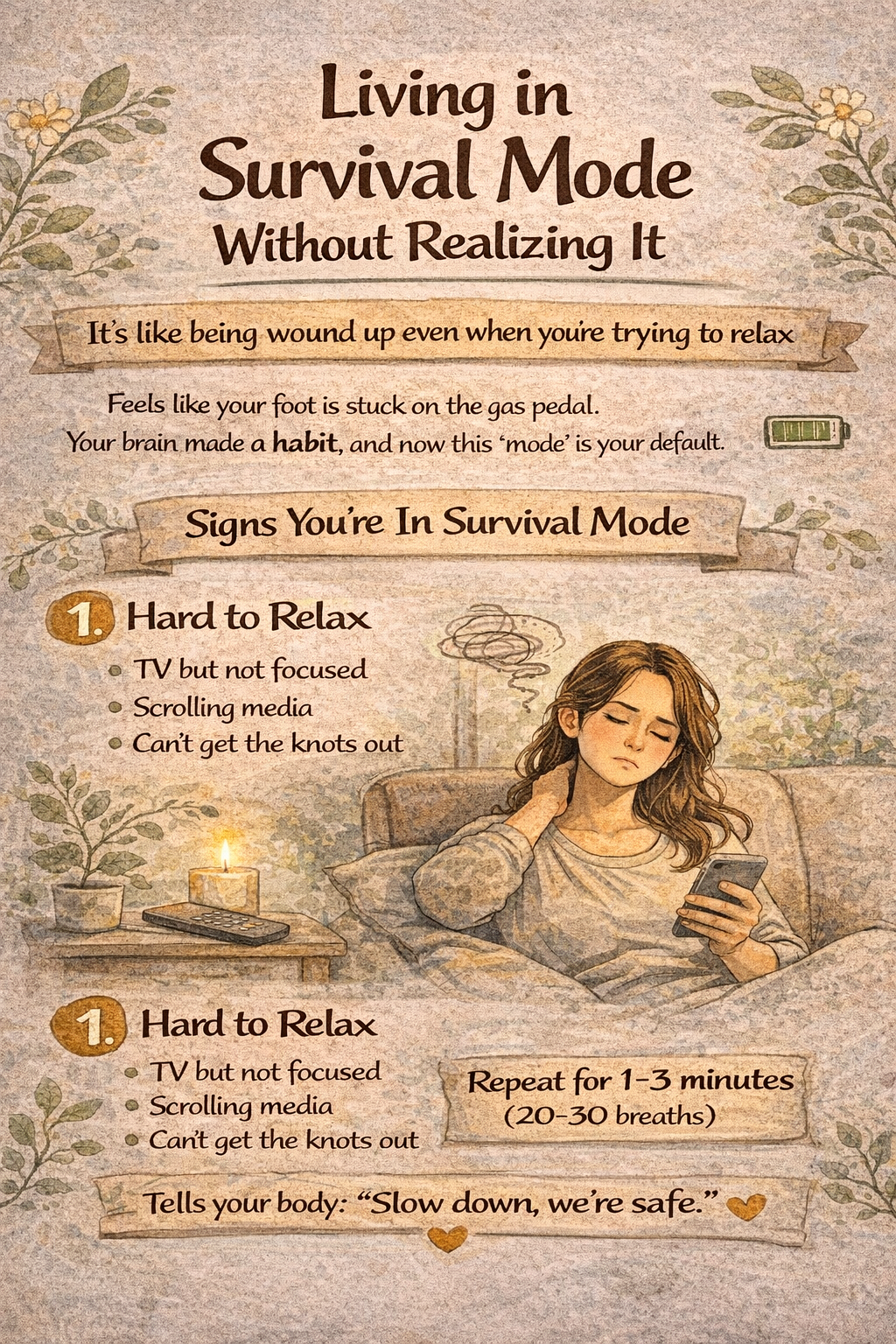 Many people believe survival mode only happens during crisis. In reality, it can become a long term way of functioning that feels so normal you no longer notice it. You keep going, managing responsibilities, showing up for others, and staying productive, yet something always feels tense beneath the surface.
